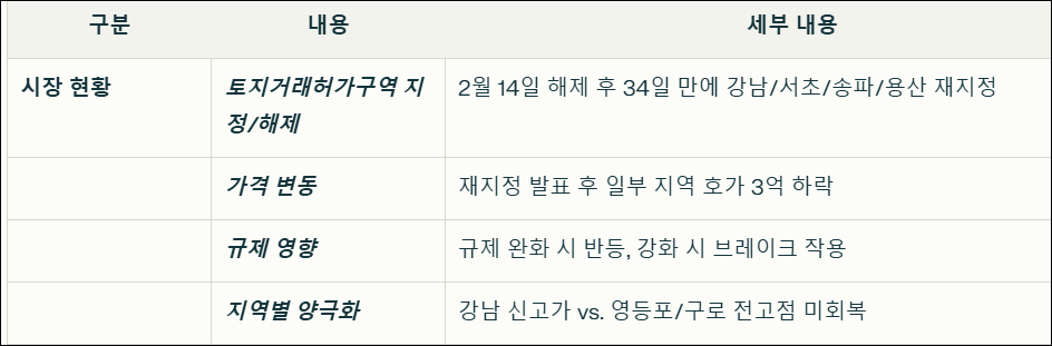 최근 서울 부동산 시장은 급격한 변동성을 보이며 혼란스러운 상황이 연출되고 있습니다. 2월 14일, 서울시가 토지거래허가구역을 해제한 지 불과 34일 만에 강남구, 서초구, 송파구, 용산구 전체를 다시 묶으면서 시장의 불확실성이 커졌습니다. 특히 강남 3구와 용산구는 서울시 전체 아파트의 약 40%를 차지하는 핵심 지역으로, 이번 재지정으로 인해 주택 구매 심리가 위축될 것이라는 전망이 나오고 있습니다. 실제로 일부 지역에서는 토지거래허가구역 재지정 발표 후 하루 만에 아파트 호가가 3억 원이나 급락하는 사례도 발생했습니다. 하지만 시장 전문가들은 이러한 혼란 속에서도 기회를 포착할 수 있다고 조언합니다.
