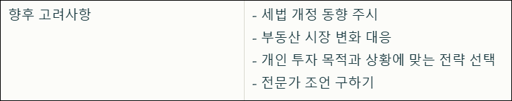 개인 매매사업자로 등록했다고 해서 모든 거래가 자동으로 사업소득으로 인정되는 것은 아닙니다. 세무당국은 실제 거래의 성격과 목적을 종합적으로 판단하므로, 형식적인 요건 충족만으로는 불충분합니다. 따라서 개인 매매사업자를 활용할 때는 실제 사업 목적에 맞는 거래를 지속적으로 수행하고, 관련 법규를 철저히 준수해야 합니다. 또한, 세법 개정에 따른 변화에도 주의를 기울여야 합니다. 최근 정부의 부동산 정책 방향에 따라 개인 매매사업자에 대한 규제가 강화될 가능성도 있으므로, 항상 최신 정보를 확인하고 대응 전략을 수립해야 합니다. 향후 부동산 시장 변화와 세법 개정 동향을 주시하면서, 개인의 투자 목적과 상황에 맞는 최적의 전략을 선택하는 것이 중요합니다. 개인 매매사업자 제도는 분명 매력적인 절세 방안이 될 수 있지만, 그에 따른 책임과 의무도 함께 고려해야 합니다. 전문가의 조언을 구하고 신중하게 접근한다면, 개인 매매사업자 제도를 통해 효과적인 부동산 투자 전략을 구사할 수 있을 것입니다.
