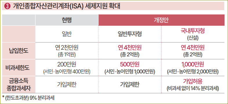 개인종합자산관리계좌(ISA) 세제지원 확대