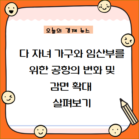 이번 글에서는 정부의 저출산 대책과 관련된 여러 정책을 소개합니다. 특히 다자녀 가구의 공항 주차료 감면 확대와 이른둥이 맞춤형 지원 대책, 가족 친화적인 공항 환경 조성 등을 상세히 설명합니다. 이러한 변화들이 어떤 긍정적인 영향을 미칠지 함께 살펴보겠습니다.