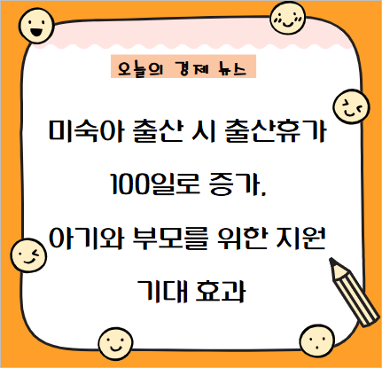 또한, 미숙아를 출산한 경우에는 출산휴가가 기존 90일에서 100일로 확대됩니다. 이는 신생아 집중치료실에서 치료를 받아야 하는 경우가 많기 때문에, 부모가 더 많은 시간을 투자하여 아기를 돌볼 수 있도록 하기 위한 배려입니다. 미숙아의 경우, 건강 상태가 불안정할 수 있어 부모의 지속적인 돌봄이 필요합니다. 이러한 조치는 부모가 아기의 건강과 안전을 지키기 위해 필요한 시간을 확보하는 데 큰 도움을 줄 것입니다. 정부는 이러한 변화가 가정의 안정과 아기의 건강한 성장에 기여할 것이라고 기대하고 있습니다.