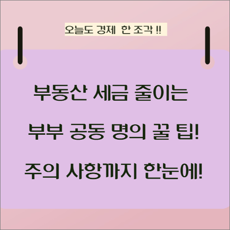 부부 공동명의, 절세와 재산관리 모두 잡는 전략