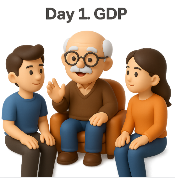 "우리 민수, 지혜야, 오늘은 할아버지가 너희들한테 재미있는 이야기 하나 해줄게. GDP라고 들어봤니?"