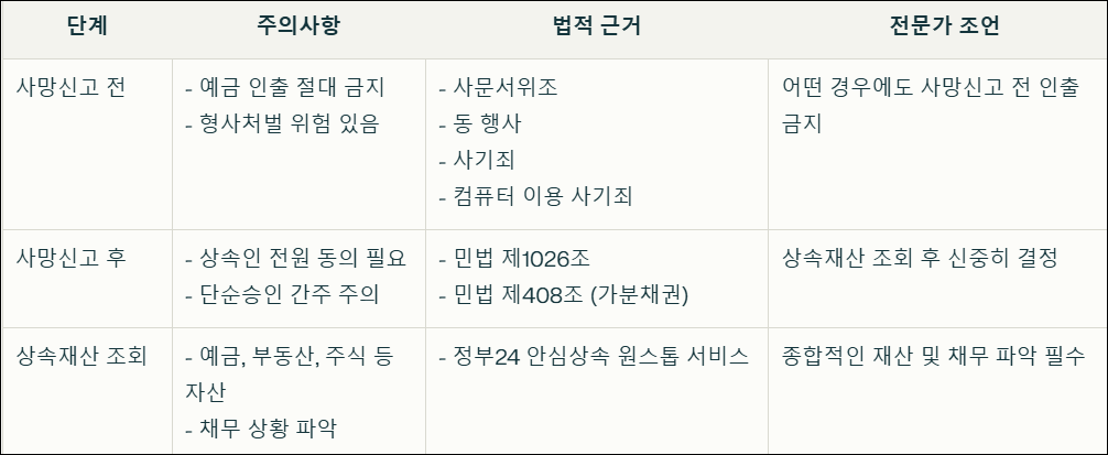 망인 예금 인출 시 주의사항: 법적 위험과 상속 절차