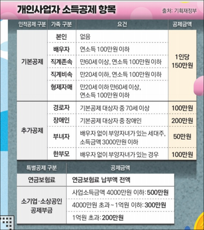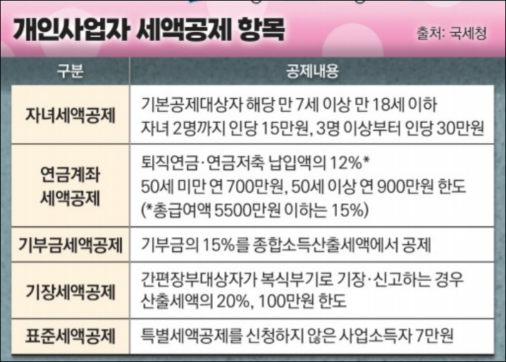 2. 사장님들이 받을 수 있는 소득공제 항목과 세액공제 항목 알아보기