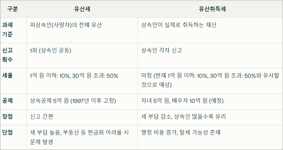 안녕하세요, 오늘은 75년 만에 큰 변화를 앞둔 상속세 제도에 대해 쉽게 이야기해볼게요. 지금까지 5억 원으로 고정된 상속공제가 물가와 부동산 가격 상승을 따라가지 못해 많은 분들이 부담을 느꼈는데요, 정부가 유산취득세라는 새로운 방식을 도입해 상속세 부담을 크게 줄이려 하고 있습니다. 복잡해 보이지만, 누구나 이해할 수 있도록 구체적인 사례와 절세 팁까지 함께 알려드릴 테니 꼭 끝까지 읽어보시고 내 가족의 미래를 준비하세요!