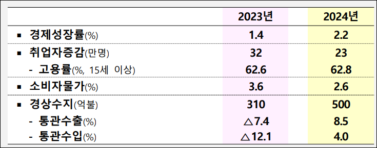 2024년 경제전망: 성장, 고용, 물가, 경상수지 변화
