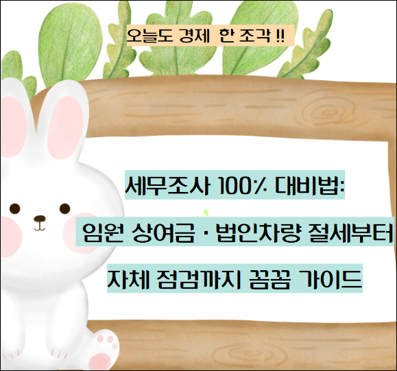 여러분, 세무조사가 두렵다면 이 글을 주목하세요. 임원 상여금과 법인차량, 보험 등 실무에서 자주 놓치는 세무 리스크를 꼼꼼히 짚어드리고, 자체 점검과 세무컨설팅까지 실질적인 대비법을 쉽게 알려드릴게요.