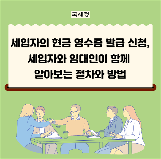 | 6. 발급 절차 | 세입자가 신청을 한 후, 관할 세무서 담당자의 확인을 거친 뒤에 현금영수증 발급이 이루어집니다. |