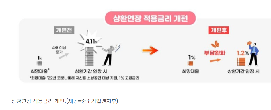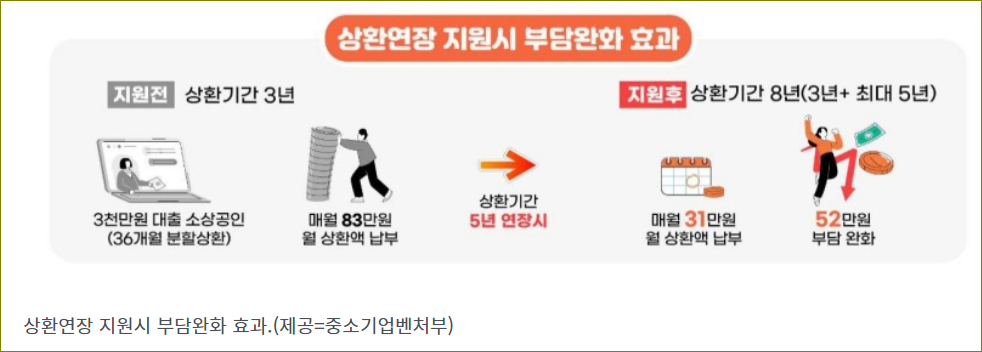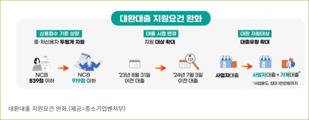 고금리 대출이나 만기연장 거절을 받은 소상공인을 위한 대환대출 프로그램도 확대되었습니다. 이 프로그램은 소상공인이 기존의 높은 이자율 대출을 더 낮은 이자율과 더 긴 상환 기간을 가진 대출로 전환할 수 있도록 지원하여 재정적 부담을 줄여줍니다.