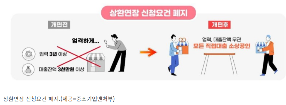기존의 상환연장 지원은 직접대출 잔액이 3000만 원 이상이고 업력이 3년 이상인 소상공인에게만 제한적으로 제공되었습니다. 하지만 새로운 정책에서는 이러한 제한을 폐지하고, 모든 소상공인이 상환 기간을 연장할 수 있도록 하여 금융 접근성을 대폭 개선하였습니다. 이 변경으로 인해 소상공인은 기존 대출에 대한 원금 상환 부담을 크게 줄일 수 있게 되었습니다.
