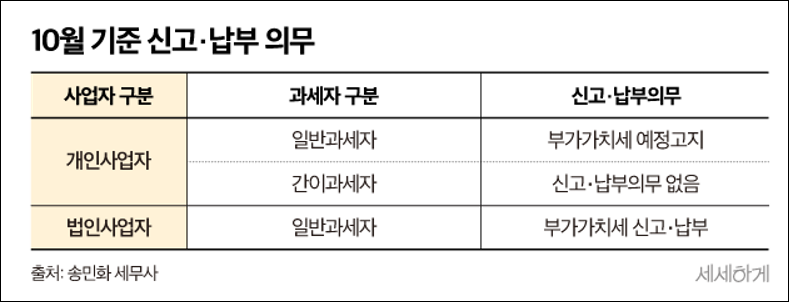 연휴가 끝나고 10월이 시작되었습니다. 이달은 부가가치세 신고기간입니다. 대부분의 사장님들은 이번 달에 부가세 고지서를 받으셨을 것입니다. 법인사업자는 10월 25일까지 부가세를 신고하고 납부해야 하며, 개인사업자와 소규모 법인사업자는 국세청에서 보낸 예정고지서에 나온 금액을 납부하면 됩니다.