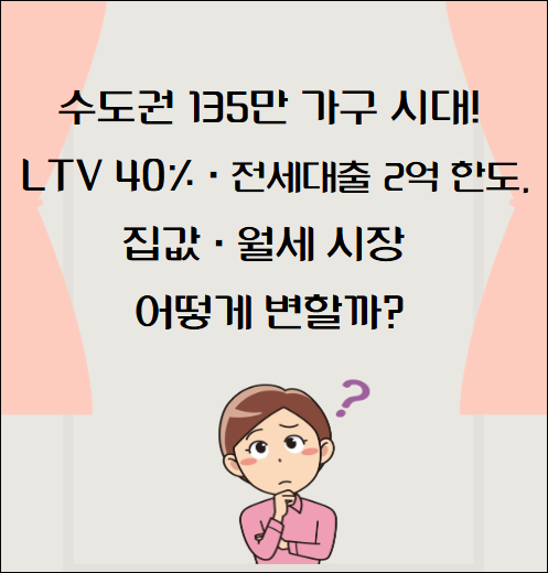 | 주담대 LTV 규제 💰 | 규제지역 LTV 50% → 40% | 강남·용산 등 평균 거래가 10억 이상 대출가능액 4억(40%)로 축소 |