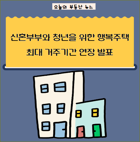 이번 정책의 또 다른 중요한 변화는 행복주택의 최대 거주기간이 연장된다는 것입니다. 행복주택은 저소득층과 청년층을 대상으로 한 주거 지원 프로그램으로, 기존의 최대 거주기간이 6년에서 10년으로, 유자녀 가구의 경우는 10년에서 14년으로 연장됩니다. 이 조치는 출산 후 가족 구성원이 늘어난 가구가 안정적으로 거주할 수 있도록 돕기 위한 것입니다.