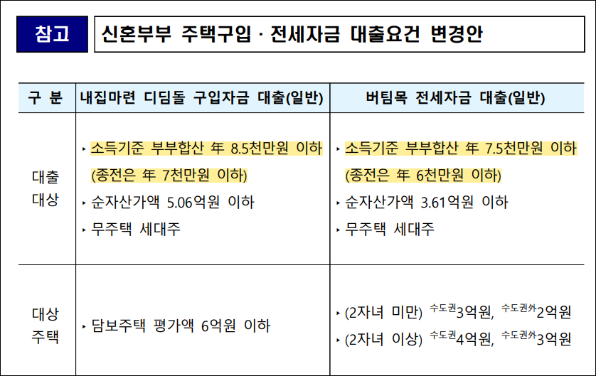 1. 신혼부부 주택구입·전세자금 대출 소득요건 완화