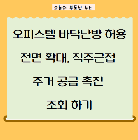 오피스텔 바닥난방 면적 제한이폐지되고생활숙박시설을 오피스텔로 용도변경할 때 전용 출입구 설치와 안목치수 산정이면제된다. 국토교통부는 도시 내 다양한 주거 형태에 대한 수요 증가에