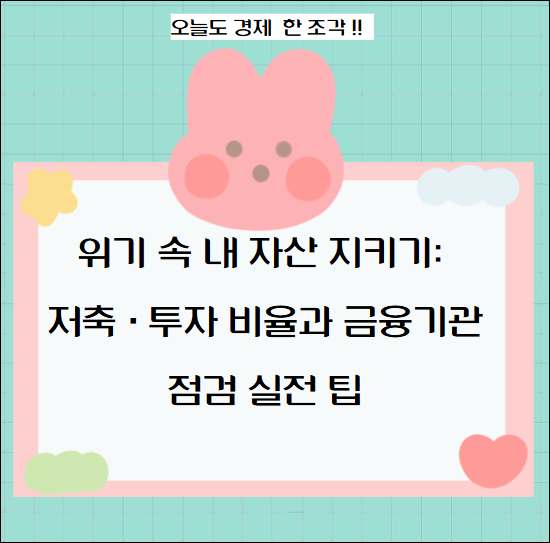 최근 경제 위기와 금융 불안, 그리고 MG손해보험 사태까지 겹치며 많은 분들이 불안해하고 있습니다. 저 역시 소득별 저축과 투자 전략을 직접 실천하며 느낀 점을 바탕으로, 여러분이 어떻게 내 돈을 안전하게 지키고, 금융기관을 점검하며, 위기 상황에서 현명하게 재테크할 수 있는지 쉽고 구체적으로 이야기해드립니다.