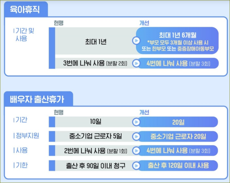 배우자 출산휴가 20일로 확대: 산모와 신생아를 위한 배려