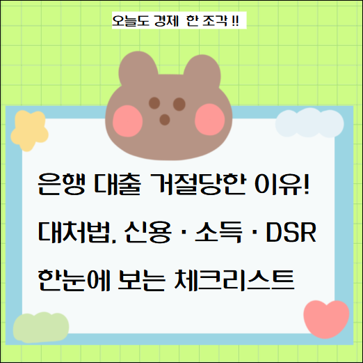 대출을 신청했는데 거절당해 당황했던 적 있으신가요? 저 역시 같은 경험을 했고, 그 과정에서 신용점수, 소득 증빙, DSR 등 중요한 심사 기준과 개선 방법을 알게 됐습니다. 이 글에서는 실제 경험과 최신 정보를 바탕으로, 대출 거절의 원인과 승인률을 높이는 실질적인 노하우를 독자 여러분께 쉽게 풀어드립니다.