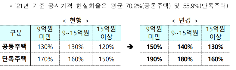 한국의 국토교통부는 2021년 8월 17일, 등록임대사업자의 임대보증금 보증 가입 심사에 부동산 시세와 1년 이내 해당 세대 매매가격 등을 활용할 수 있도록 하는 내용의 공시가격 및 기준시가 적용비율 개정 고시를 발표하고, 같은 날부터 시행에 들어갔습니다. 이러한 조치는 민간임대주택에 관한 특별법에 의해 모든 등록임대주택에 대한 임대보증금 보증 가입이 의무화된 것에 대한 후속 조치로, 기존의 주택가격 기준이 시세와 괴리된 문제를 해결하고, 전세보증금 반환보증 등에서 다양한 가격 기준을 적용하는 현실을 반영한 것입니다.