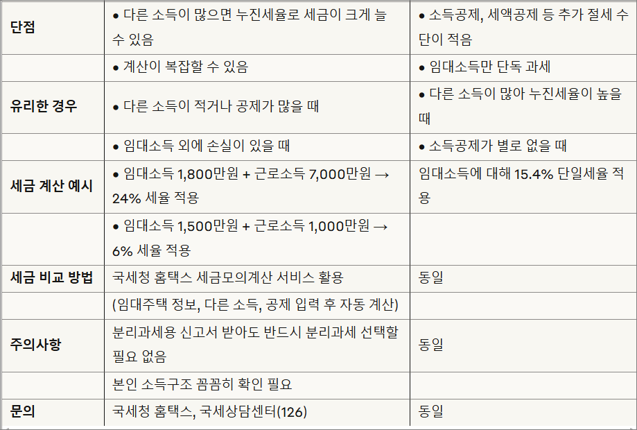 주택임대소득이 연 2000만원 이하라면 종합과세와 분리과세 중 어떤 방식을 선택해야 세금을 덜 낼 수 있을지 고민이 많으시죠? 이 글에서는 실제 세금 차이, 홈택스 모의계산 활용법, 절세 전략까지 임대인 입장에서 꼭 알아야 할 핵심 정보를 알기 쉽게 안내합니다.
