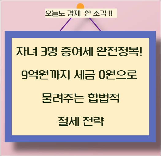 자녀 3명 가정의 증여세 최적화 완벽 가이드. 10년 단위 분할증여와 혼인·출산·창업 특례 활용으로 최대 9억원까지 세금 없이 이전 가능. 2025년 현행 세법 기준 연령별 맞춤 전략과 실제 계산 사례까지 총정리.