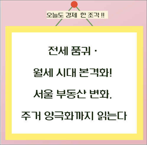 근본적으로 서울, 수도권 주요지의 주거 양극화가 더 심해지고 있어요. 전세 구하기는 점점 어려워지고, 월세 전환 가속화로 청년·신혼부부 같은 사회초년생들의 주거비 부담은 크게 늘었어요. 지금처럼 임대 시장이 월세 중심으로 빠르게 바뀌는 상황이라면 주거안정성 불안이 사회 전체로 확산될 수밖에 없겠죠.