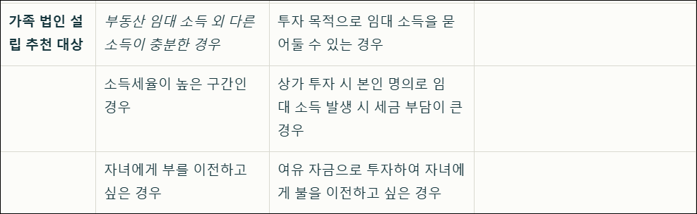 *개선사항*으로는 법인세율 인하, 법인 운영 관련 세법 교육 강화 등을 통해 소규모 가족 법인의 부담을 줄여주는 정책이 필요하다고 생각합니다.