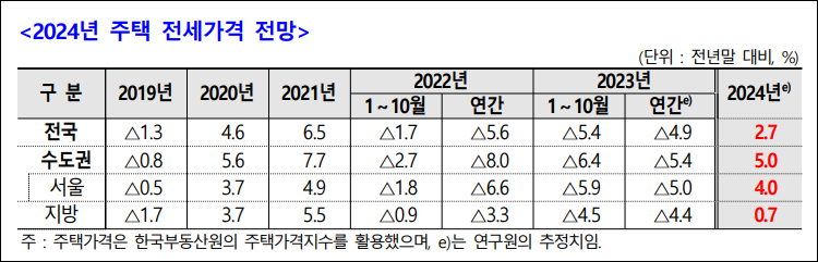 Q1: 주택산업연구원은 2024년에 어떤 주택시장 전망을 내놓았나요?
