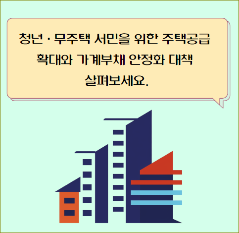 - 신축 소형 비아파트 구입 시 세제지원, 주택 청약 시 무주택으로 인정되는 소형주택 범위 확대 등을 통해 민간의 공급 확대도 유도할 것입니다.