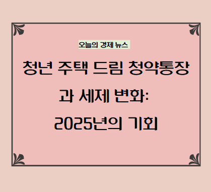 2025년부터 시행되는 청년 주택 드림 청약통장은 청년들에게 주택 구매의 기회를 제공하는 중요한 제도입니다. 이 통장은 청년들이 주택을 구매할 수 있도록 돕는 다양한 혜택을 포함하고 있으며, 세제 변화와 함께 더욱 유리한 조건을 제공합니다.