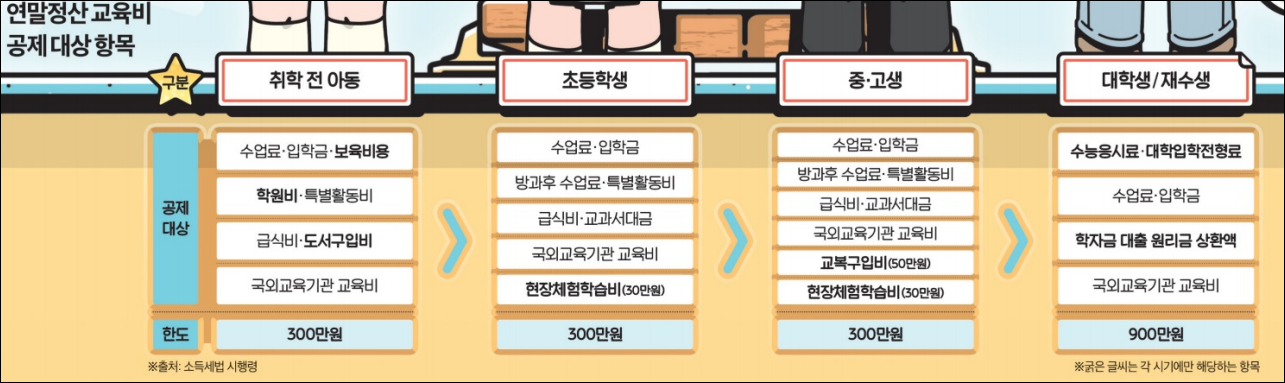 4. 초등학교 입학 후 교육비 세액공제의 변화 및 초등학생의 교육비 세액공제 항목