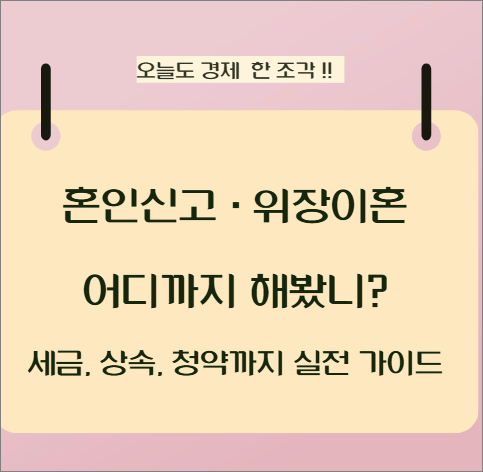 결혼을 앞두거나 이미 함께 살고 있는 분들이라면 혼인신고, 위장이혼, 절세, 상속세, 청약과 같은 고민을 한 번쯤 해보셨을 겁니다. 저 역시 현실적인 조건과 고민 속에서 진짜 중요한 것이 무엇인지 고민하게 됐습니다. 이 글에서는 혼인신고 미루기, 위장이혼, 그리고 세금 절세의 진짜 리스크와 장단점, 그리고 꼭 알아야 할 주의사항과 제도 개선점까지, 사례와 실전 정보로 쉽게 풀어 설명합니다. 혼인과 이혼, 가족과 재산, 세금 사이에서 현명한 선택을 내릴 수 있도록 실제 경험과 최신 제도를 함께 소개할게요.