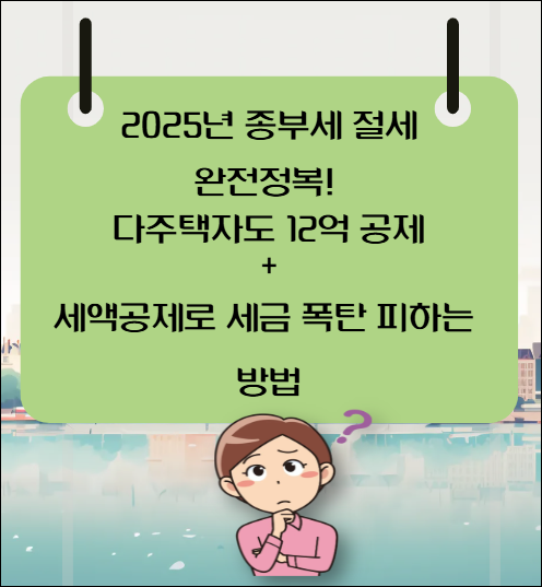 2025년 종합부동산세 부담, 걱정 많죠? 다주택자라면 더욱 부담이 클 텐데요. 이번 글에서는 12억 원 공제와 최대 80% 세액공제를 받는 5가지 특례, 그리고 부부 공동명의 절세 전략까지 쉽고 친절하게 알려드립니다. 9월 신청 마감 전에 꼭 확인하세요! ✅