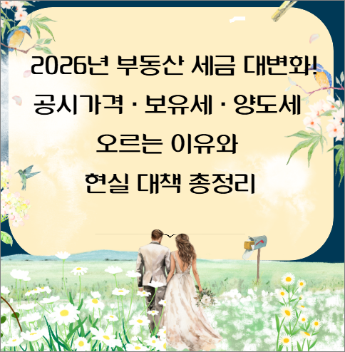 “여러분, 내년 부동산 세금 정말 걱정되시죠? 공시가격 현실화부터 보유세·양도세 중과까지, 2026년 예고된 정책 변화와 내 지갑을 지킬 대응법을 쉽고 재미있게, 표와 체크포인트로 정리해봤어요. 한 번 읽고 준비하면 불안함이 사라집니다! 함께 꼼꼼히 살펴보세요! 🎯💡📈”