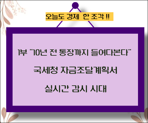 국세청 보도자료에 나온 다른 전문가의 말이 소름 돋습니다. "자금조달계획서를 보면 개인 간 채무, 이른바 '부모찬스'를 이용한 거래가 늘고 있다. 자금 출처 분석 체계를 한층 고도화해 탈루혐의자를 정교하게 선별하겠다."