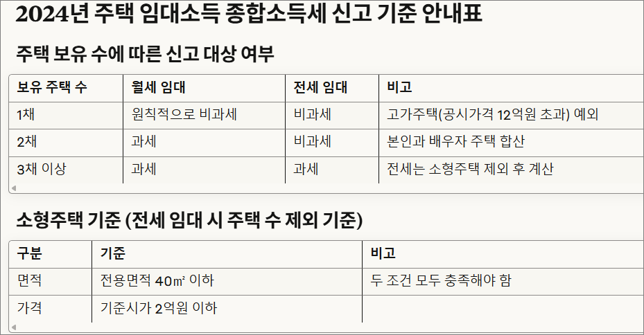 2024년 귀속 종합소득세 신고, 주택 임대소득 과세 대상 정확히 알고 준비하세요