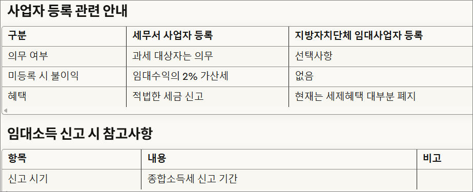 # 임대소득 신고 의무와 사업자 등록에 관한 중요 사항
