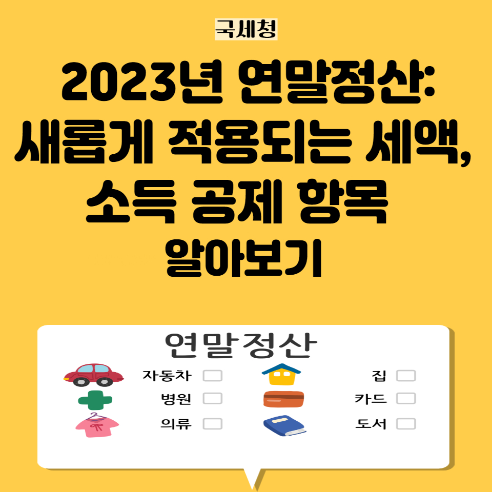 2023년 연말정산 시즌이 도래하면서, 이번 연말정산에서 새롭게 적용되는 세액·소득공제 항목에 대해 알아보는 것이 중요해졌습니다. 이번 글에서는 고향사랑기부금, 노동조합 조합비 세액공제, 문화비 소득공제, 대중교통비 공제율, 신용·체크카드 공제한도 변동, 연금계좌 저축 세액공제 한도 상향, 중소기업 근로자 세액 감면, 최저세율 적용 소득구간 조정 등 다양한 항목을 상세하게 다루었습니다. 이를 통해 직장인들이 연말정산에서 환급금을 최대로 돌려받을 수 있는 방법에 대해 알아볼 수 있습니다.