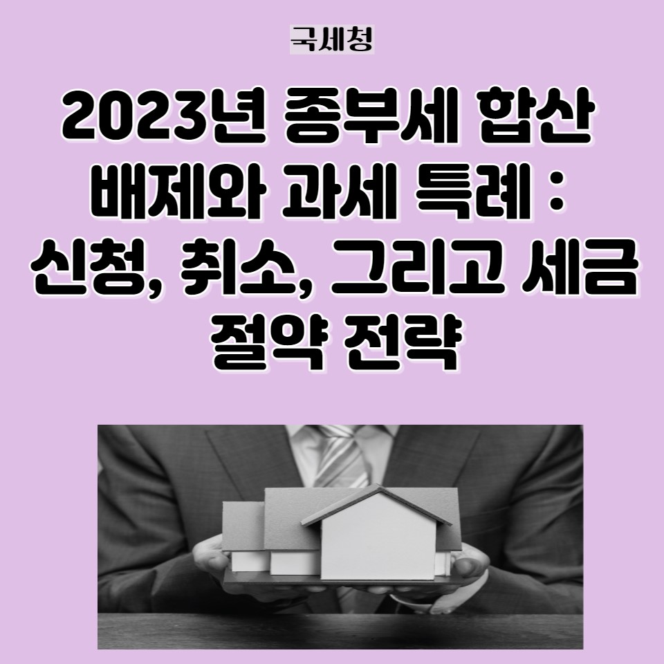 본 글은 종합부동산세, 특히 종부세 합산배제와 과세특례에 대해 다룹니다. 합산배제와 과세특례의 기본적인 개념을 설명하고, 이들을 신청하거나 취소할 수 있는 시기와 방법을 안내합니다. 또한, 2023년 세제 변경에 따른 세금 절약 전략, 특히 부부 공동명의 1 주택자 과세특례 취소를 통한 세금 절감 방안을 제시합니다. 이를 통해 독자들이 종부세를 더 효과적으로 관리하는 데 도움을 줄 수 있습니다.