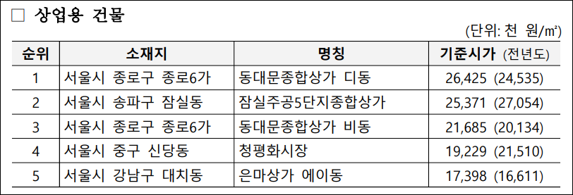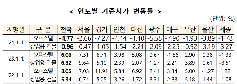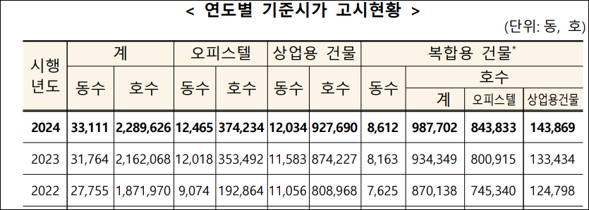 2024년 오피스텔 및 상업용 건물 기준시가 정기 고시
