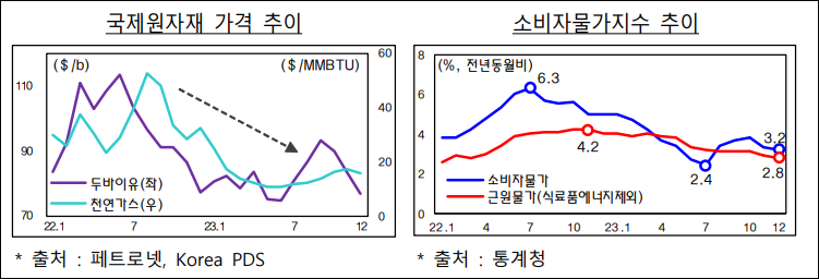 소비자 물가는 국제 원자재 가격의 안정세와 기대 인플레이션의 하락 등으로 인해 상승세가 서서히 둔화될 것으로 예상됩니다. 그러나 상반기까지는 비교적 높은 물가 수준이 이어질 것으로 보여, 서민들의 체감경기 회복에 제약이 될 전망입니다.