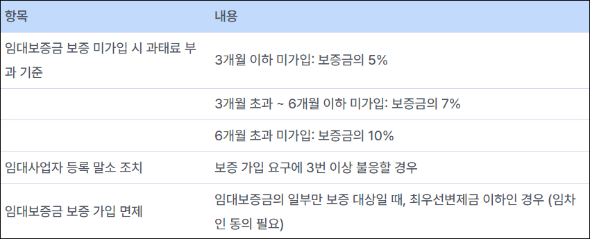 개정안에 따르면, 임대보증금 보증에 가입하지 않은 기간에 따라 과태료를 차등적으로 부과하는 제도가 마련되었습니다. 3개월 이하 미가입 시에는 보증금의 5%, 3개월 초과 6개월 이하는 7%, 그리고 6개월 초과 시에는 10%의 과태료가 부과됩니다. 이러한 과태료 부과 기준은 임대사업자가 보증에 가입하도록 유도하며, 임차인의 권리를 강화하는 데 기여합니다.