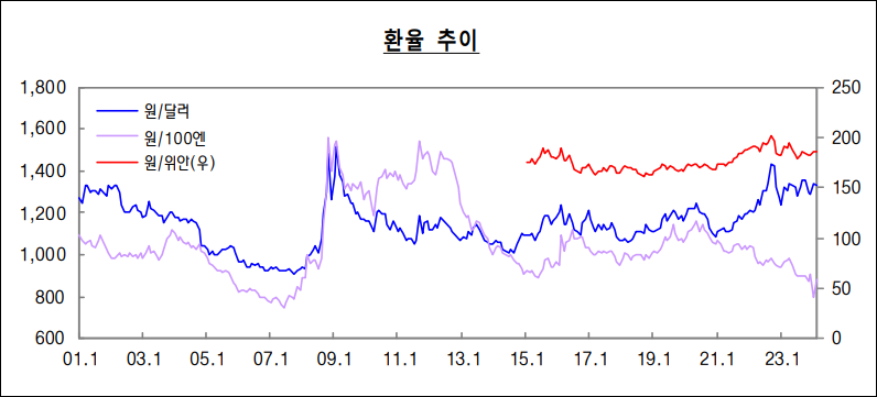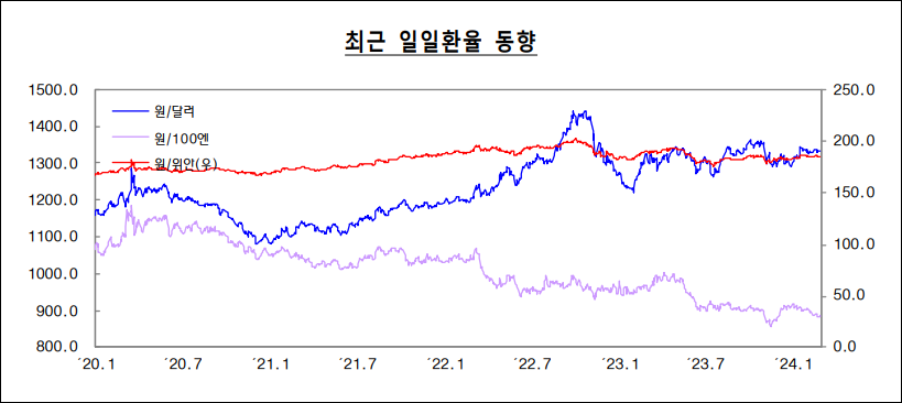 2024년 2월 말, 대한민국 외환 시장에서는 원/달러 환율이 소폭 하락하여 강세를 보였습니다. 이러한 환율 변동은 국제 경제 상황에 대한 시장의 반응을 나타내며, 국내외 경제 지표와 미국의 통화정책 변화 등이 환율 변동에 영향을 미칠 수 있습니다. 이러한 변동성은 수출입 기업 및 외환 시장 참가자들에게 영향을 미칠 수 있습니다.