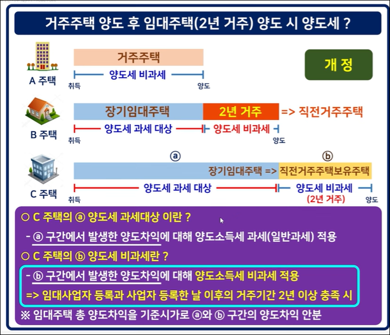- 비과세 적용 기간: 여전히 직전 거주주택 양도일 이후부터 발생한 양도차익에만 적용