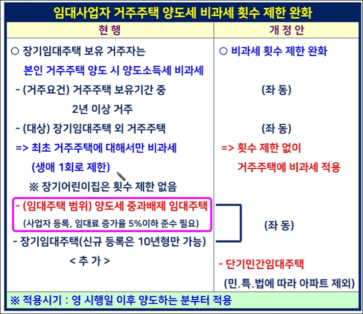 - 거주주택 양도세 비과세 횟수 제한 폐지