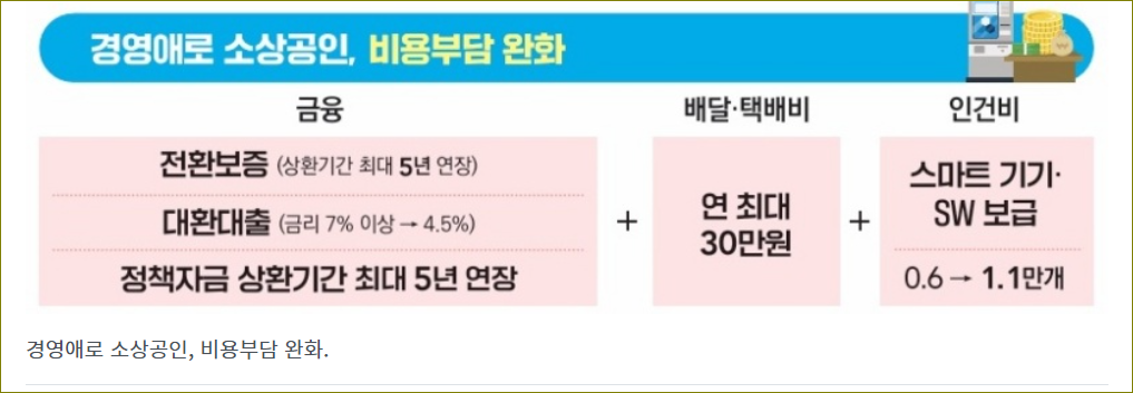 소상공인들에게는 대환대출과 배달·택배비 지원이 제공됩니다. 소상공인들은 그동안 높은 금리의 대출로 인해 경영난을 겪었지만, 대환대출을 통해 저금리로 전환하여 재정적 부담을 줄일 수 있습니다. 또한, 배달·택배비 지원을 통해 운영 비용을 절감하고, 키오스크 설치 지원으로 효율적인 경영이 가능해집니다. 이러한 지원책은 소상공인들이 안정적으로 사업을 이어갈 수 있도록 돕고, 폐업 위기에서 벗어나 다시 한 번 재도약할 수 있는 기회를 제공합니다.