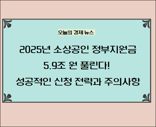여러분, 2025년에 정부가 소상공인을 위해 무려 5.9조 원의 지원금을 풀었다는 소식 들으셨나요? 오늘은 이 큰 기회를 어떻게 잡을 수 있는지, 그리고 주의해야 할 점은 무엇인지 함께 알아보려고 해요. 성공 사례부터 신청 방법, 그리고 지원금을 효과적으로 활용하는 방법까지, 여러분의 사업 성공을 위한 모든 정보를 준비했습니다. 함께 알아볼까요?