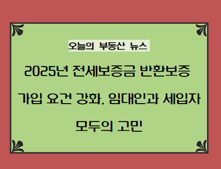 2025년부터 시행될 전세보증금 반환보증 가입 요건 강화에 대해 이야기해보려 합니다. 이 정책은 세입자와 임대인 모두에게 큰 영향을 미칠 것으로 예상되며, 특히 저소득층 세입자에게는 더욱 심각한 재정적 부담을 안길 수 있습니다. 전세 시장의 안정성을 높이기 위한 이 정책의 필요성과 대안에 대해 함께 고민해보는 시간을 가져보세요.