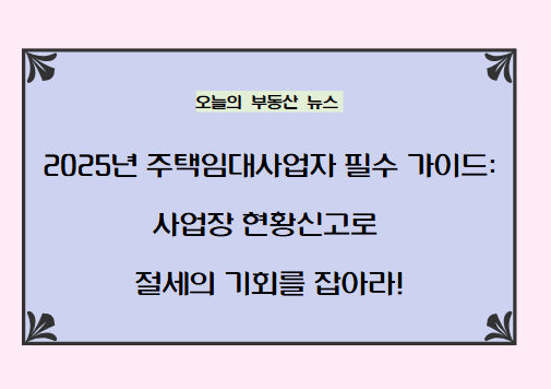 2025년 주택임대사업자를 위한 사업장 현황신고 가이드. 2월 10일까지 진행되는 필수 신고로, 2주택 이상 보유자나 보증금 3억원 초과자는 반드시 신고해야 하며, 정확한 신고로 절세 혜택을 받을 수 있다.